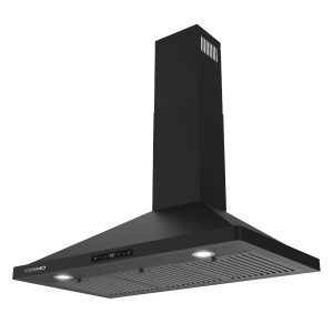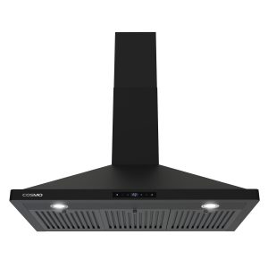 Remodel your kitchen with Cosmo’s COS-63190S-BK modern canopy wall mount range hood. Our premium matte black finish is built to withstand high heat, grease, oil and steam. This 36 in. wall mount range hood includes a three-sided seamless chimney for clean lines. 380 CFM of air movement allows you to cook without unwanted odors and grease lingering in your home. The LCD touch control panel allows you to select from three fan speeds and turn on and off the surface light, all from your fingertips. A 120V 3-prong power cord is included for easy installation. Bring contemporary style and an upscale, luxury feel to your kitchen with Cosmo appliances. Part of the Vista Collection, bringing enhanced functionality and design, offering a well-rounded option for those looking for more convenience and style in an appliance.