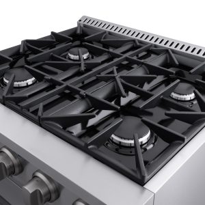 - Gas cooktop comes equipped with 4 sealed Italian-made burners that give you precision and control, includes two 15,000 BTU burners and two 9,000 BTU burners