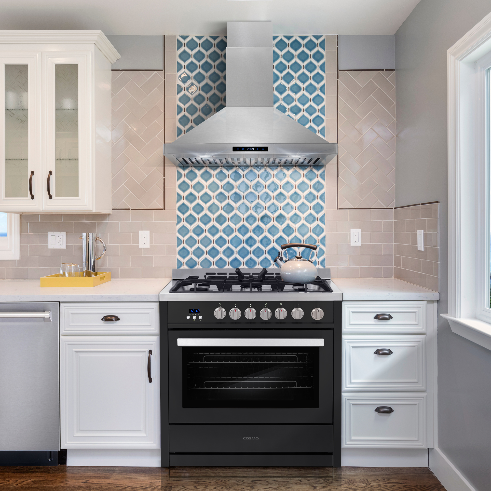 To make delicious meals you need the tools of the trade to make it happen. Cosmo’s COS-965AGC-BKS Freestanding Single Oven Gas Range in matte black features 5 high performance burners to allow you to create culinary masterpieces from start to finish. Designed with a large 3.8 cu. ft. oven to bake, broil, and roast meat to a flavorful crispness on the outside while maintaining tender juiciness inside. Rapid Convection from Cosmo delivers superior results that can be tasted with more flavorful cooking. Our single oven gas range cooktop features one 17,400 BTU Triple Ring Burner, one 8,200 BTU Rapid Burner, two 6,900 BTU Semi-Rapid Burners and one 5,000 BTU Auxiliary Burner. A built-in display and electronic controls let you set the clock and timer for precision cooking. For added versatility, an optional Liquid Propane Conversion Kit is sold separately to convert our freestanding gas range to run on propane. The Cosmo Nebula Collection offers reliability with essential features, providing a straightforward solution for those who seek practicality in an appliance.