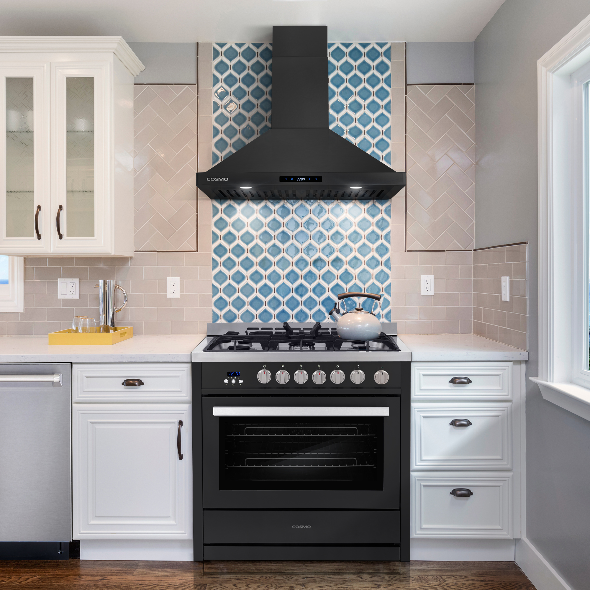 To make delicious meals you need the tools of the trade to make it happen. Cosmo’s COS-965AGC-BKS Freestanding Single Oven Gas Range in matte black features 5 high performance burners to allow you to create culinary masterpieces from start to finish. Designed with a large 3.8 cu. ft. oven to bake, broil, and roast meat to a flavorful crispness on the outside while maintaining tender juiciness inside. Rapid Convection from Cosmo delivers superior results that can be tasted with more flavorful cooking. Our single oven gas range cooktop features one 18,000 BTU Triple Ring Burner, one 8,800 BTU Rapid Burner, two 6,900 BTU Semi-Rapid Burners and one 5,000 BTU Auxiliary Burner. A built-in display and electronic controls let you set the clock and timer for precision cooking. For added versatility, an optional Liquid Propane Conversion Kit is sold separately to convert our freestanding gas range to run on propane. The Cosmo Nebula Collection offers reliability with essential features, providing a straightforward solution for those who seek practicality in an appliance.