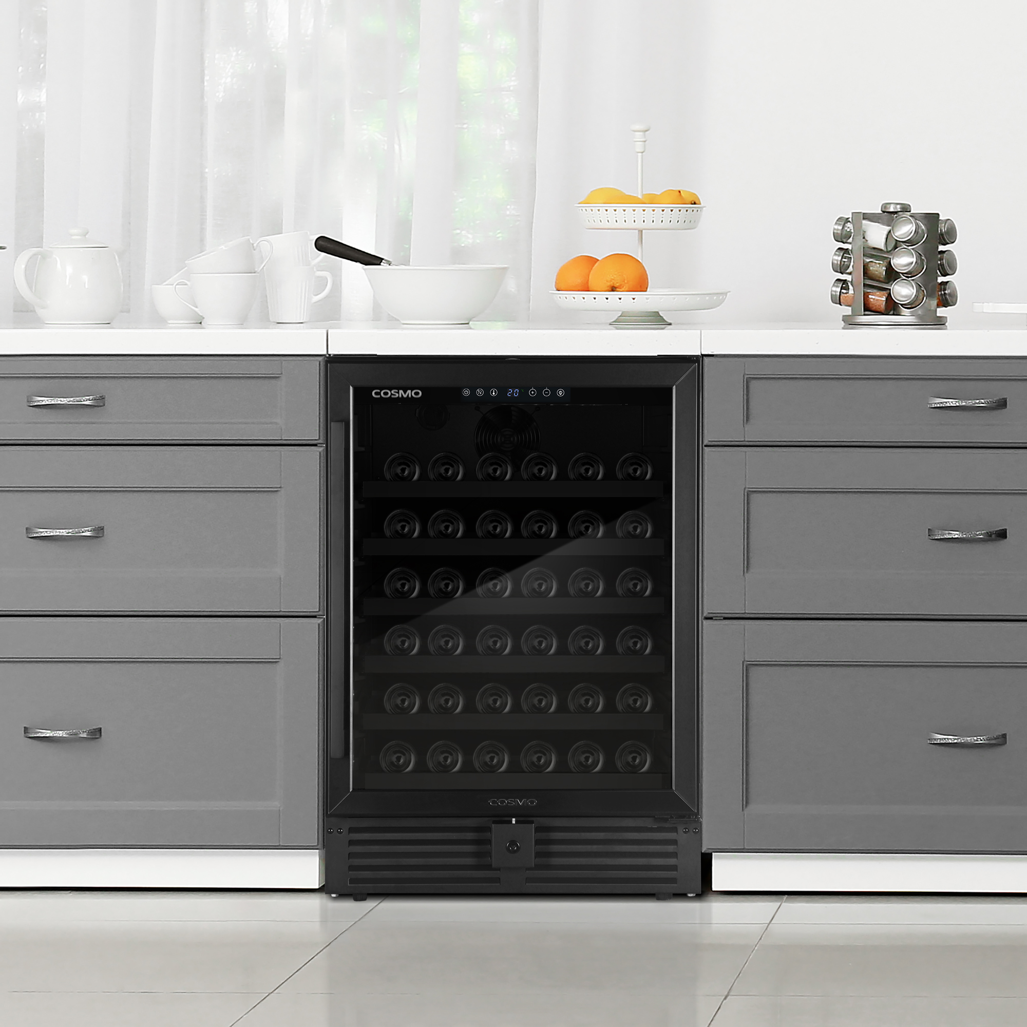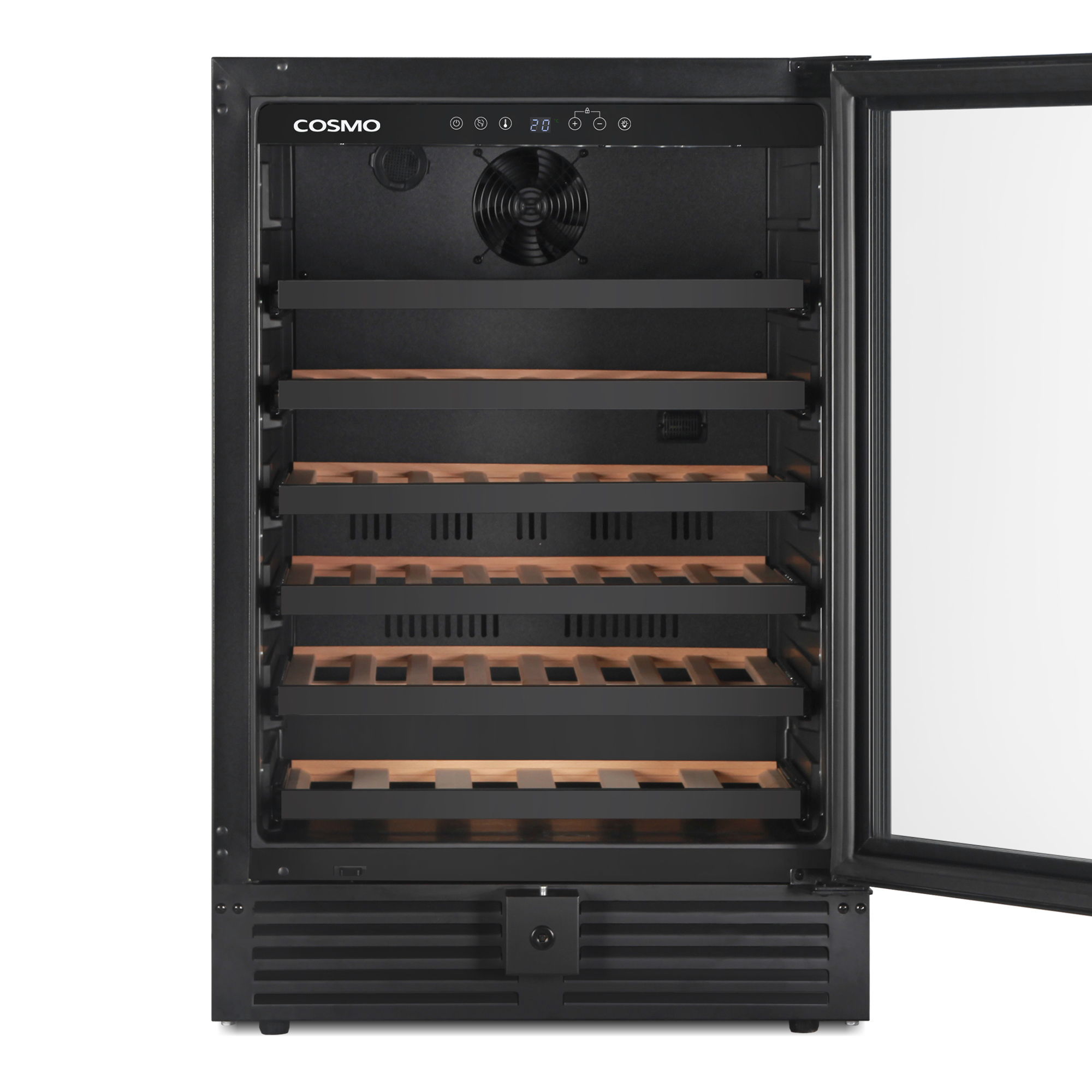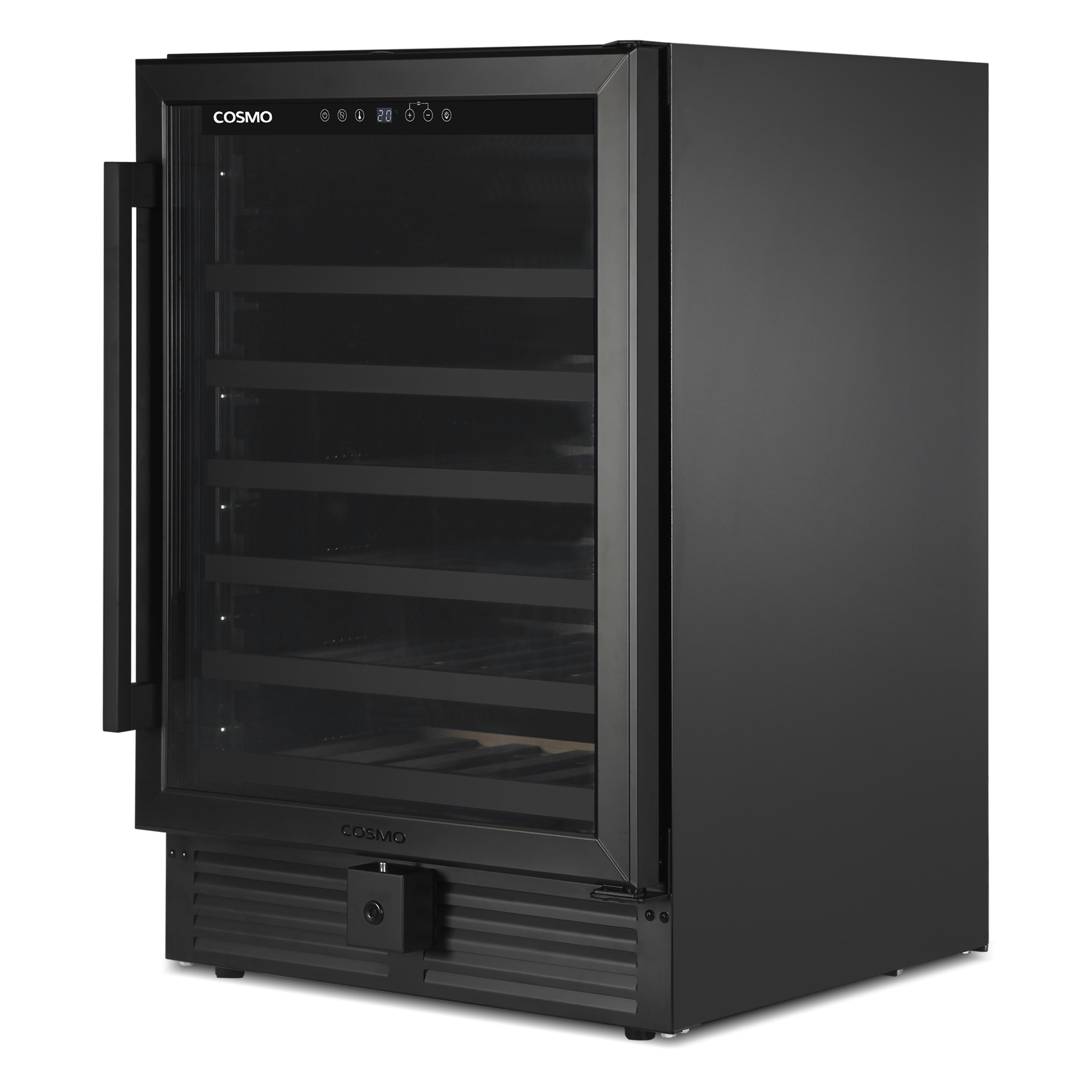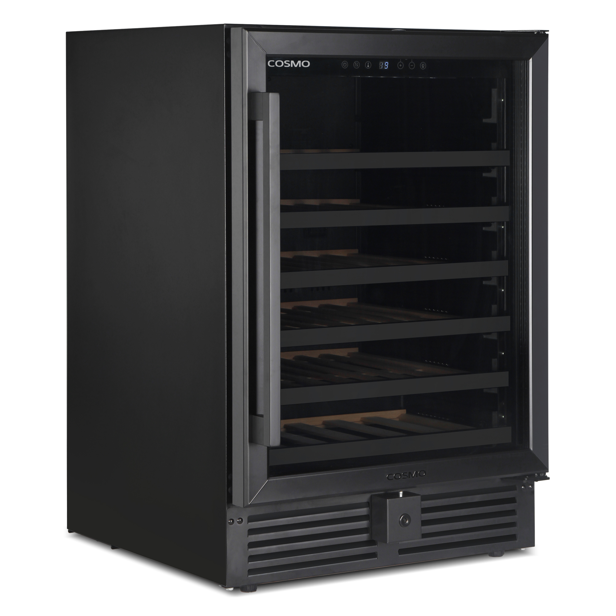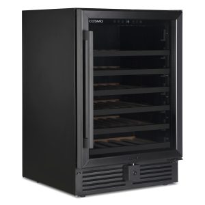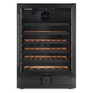 Cosmo’s 145L (52 bottles) Single-zone Compressor Wine Cooler is designed to preserve and protect wine, by eliminating harmful light, fluctuating temperatures, humidity, and vibration. We’ve combined advanced technology and our signature sleek appearance for you to enjoy quick access to cold drinks and your favorite wines. Our wine cooler features a matte black door frame with 3-layer glass, 6 Beechwood shelves with telescopic sliding rails, and can handle a large capacity of bottles. You have the power to maintain the flavor of your favorite wine with a temperature range between 41°F-68°F / 5°C-20°C and a fan cooling system. Part of the Lumin Collection, bringing enhanced functionality and design, offering a well-rounded option for those looking for more convenience and style in an appliance.